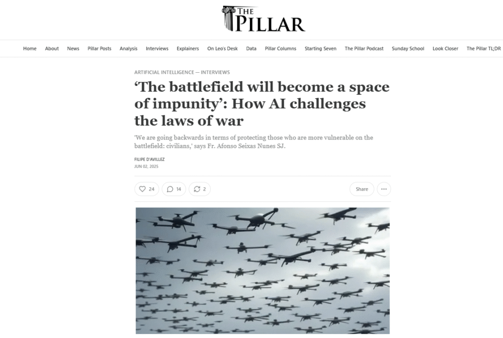 I interviewed Father Afonso Seixas-Nunes, an expert on the Law of War and the moral and ethical impact of Artificial Intelligence on warfare. The fascinating conversation can be read in full at The Pillar.