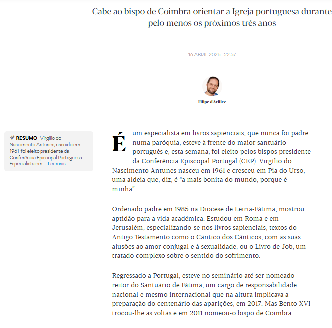 O meu perfil do bispo D. Virgílio Antunes, novo presidente da CEP, para o caderno Ideias, do Expresso. Podem ler o artigo completo aqui (exclusivo para assinantes)