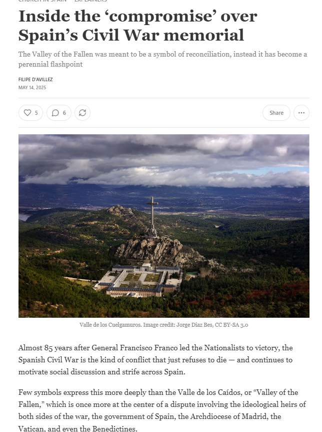 Inside the ‘compromise’ over Spain’s Civil War memorial What is going on in the Valley of the Fallen, in Spain? I wrote about it for The Pillar, and you can read the full article here.